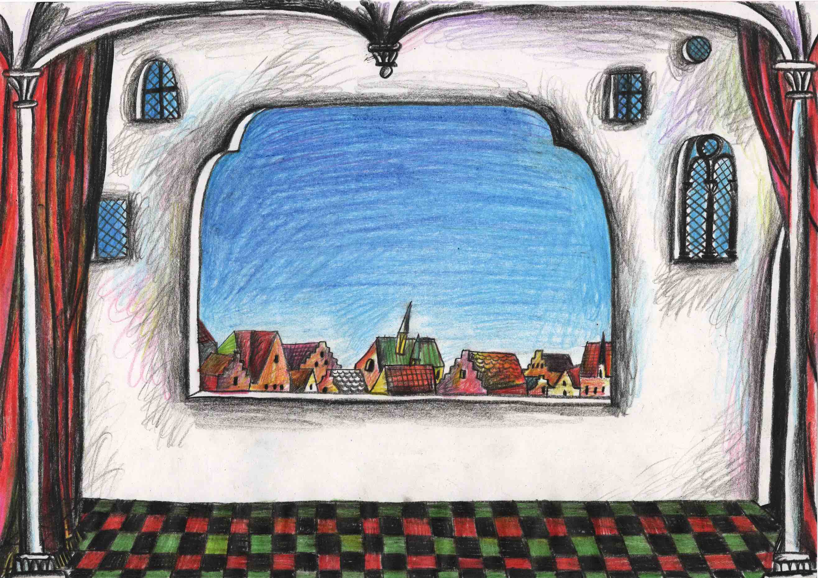 Every scene includes its own setting — backgrounds, buildings, and interior props.
